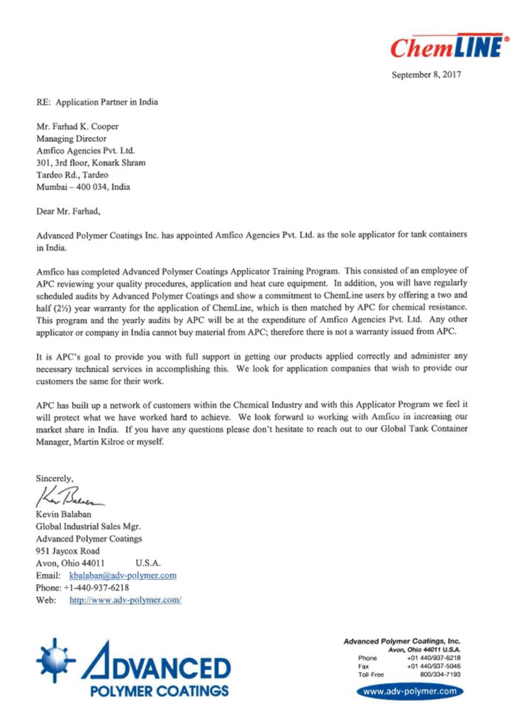 For over two decades, Amfico has been a leader in Indiaโs bulk containerized logistics ecosystem. The focus has been on innovative solutions with a depot in Jasai and Dighode offering all in one services to cater to the demands of the industry. Distinct emphasis on tank operations, bulk liquid solutions, safety products as well as representation of global companies in India.